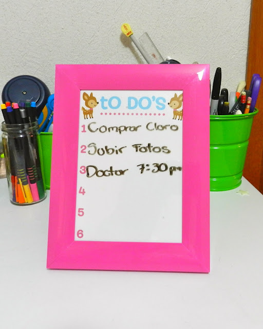 Escribe todo lo que quieras y borra con un trapito o servilleta. . . mi marco va directo a mi escritorio!!